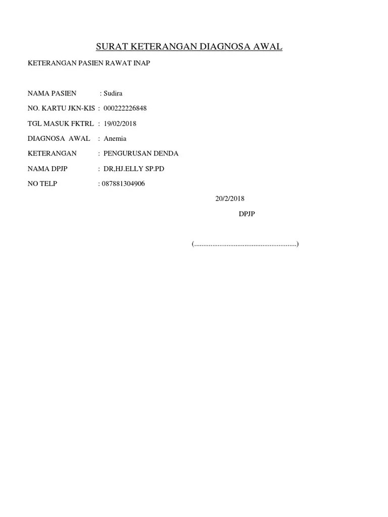 Contoh Diagnosa Surat Sakit - Contoh Surat Hasil Diagnosa Penyakit Fill Online Printable Fillable Blank Pdffiller - Mohon jelaskan diagnosis dan kapan diagnosis tersebut ditegakkan.